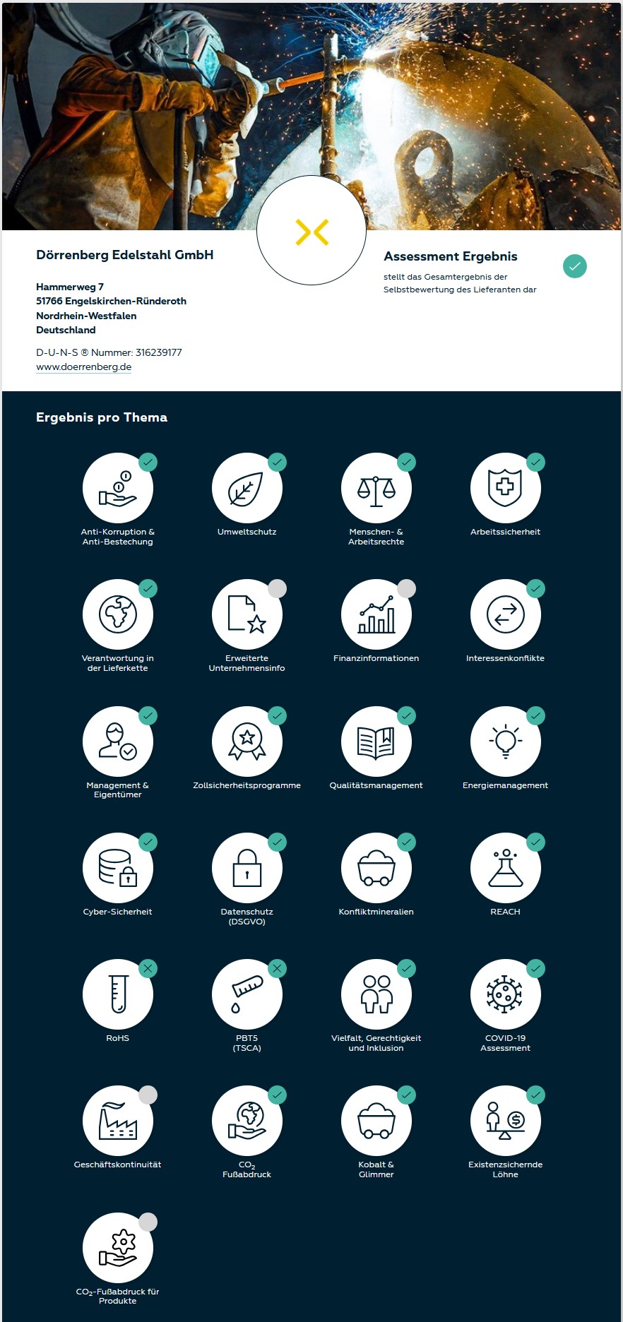 Anerkannte Plattformen wie EcoVadis, SAQ 5.0 (Supplier Assurance), IntegrityNext und Envoria schaffen Transparenz und Vergleichbarkeit für unsere Geschäftspartner.