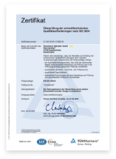 Zur Absicherung von Strukturen, Prozessen und Ergebnissen arbeiten wir nach DIN EN ISO 9001. Branchenspezifisch ergänzt wird dies durch den Nachweis schweißtechnischer Qualität nach DIN EN ISO 3834 sowie durch Konformität gemäß Richtlinie 2014/68/EU für drucktragende Anwendungen. So bleibt Qualität reproduzierbar über den gesamten Lebenszyklus