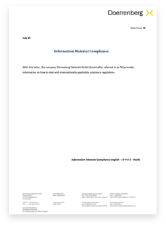 Wir berücksichtigen internationale Konventionen, nationale Gesetze, Embargos und Schutzrechte und setzen unsere Managementsysteme verbindlich um. Diese Entsprechung deckt die geforderten Punkte zur Nachhaltigkeit ab; zusätzliche Fragebögen, Portale oder Unterschriften vermeiden wir zur Reduktion des Aufwands.